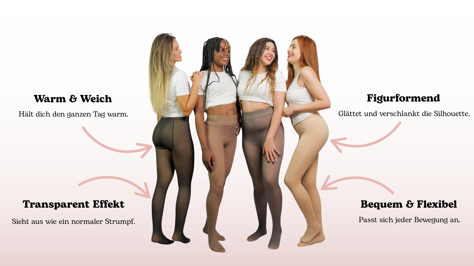 Tausende Frauen haben die transparente Thermo-Strumpfhose LEGGS bereits für eine schöne Silhouette ohne Winterstress gewählt deshalb haben wir großes Vertrauen in unsere Produkte.