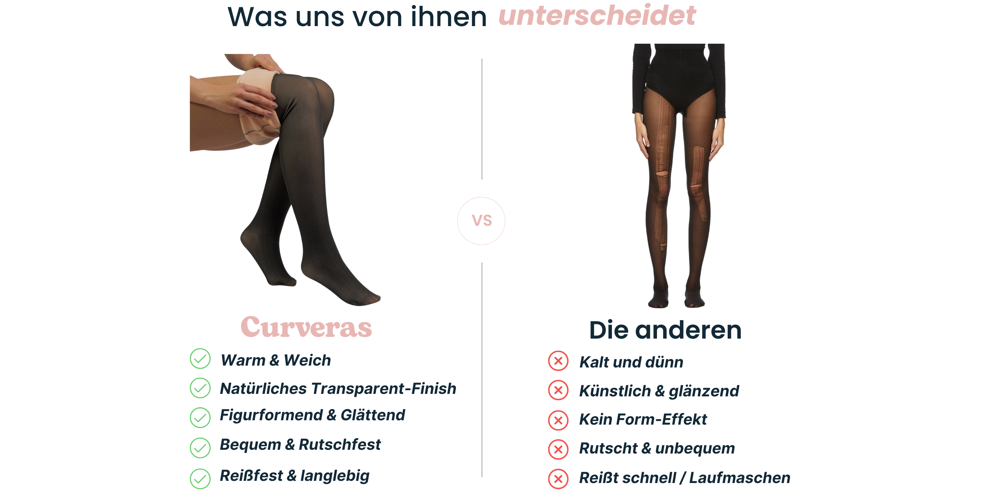 Alle bei der Herstellung unserer Strumpfhosen verwendeten Materialien sind hochwertig.