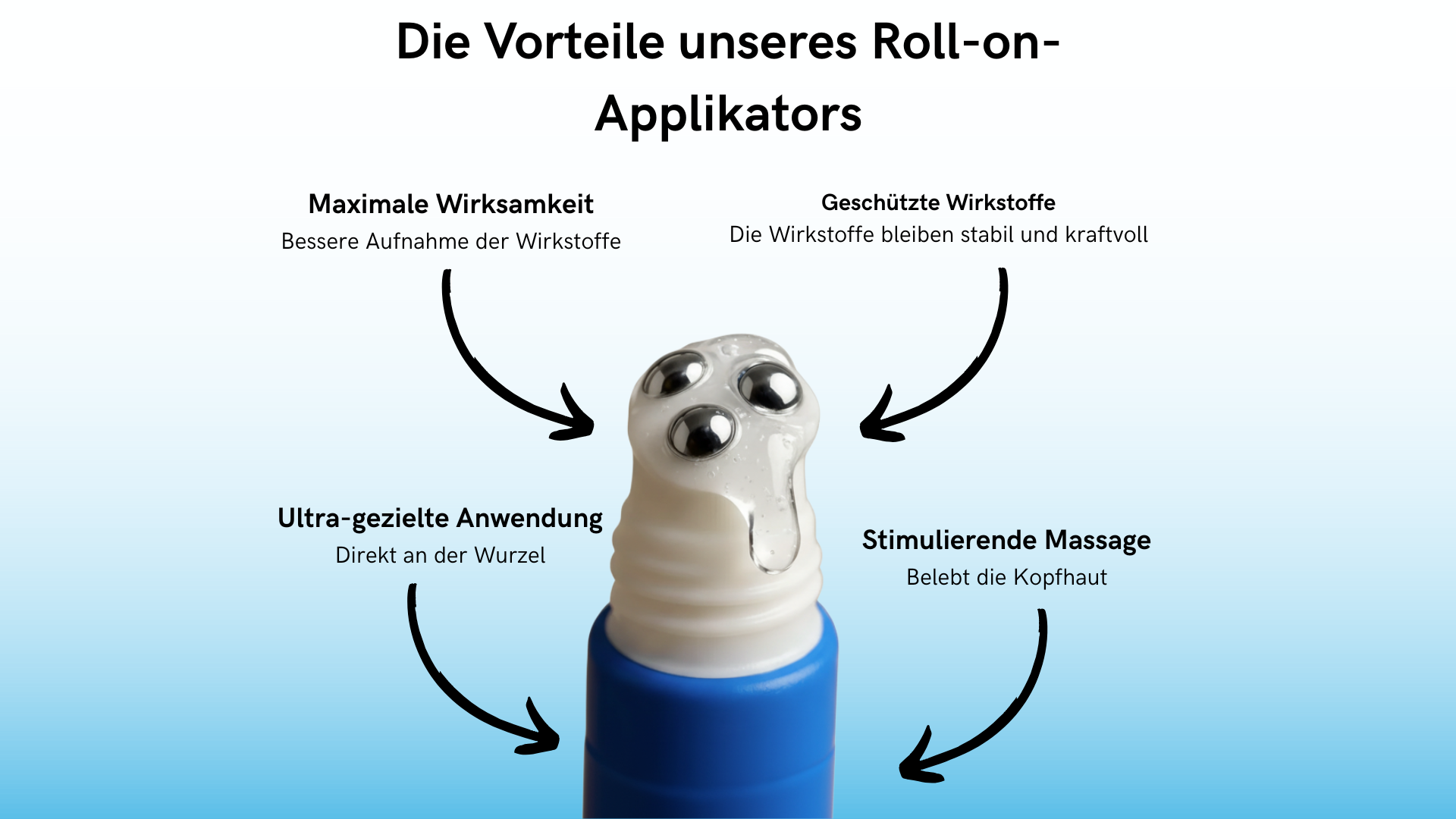 Der Roll-on ermöglicht es, gezielt auf dünner werdende oder gereizte Stellen aufzutragen.